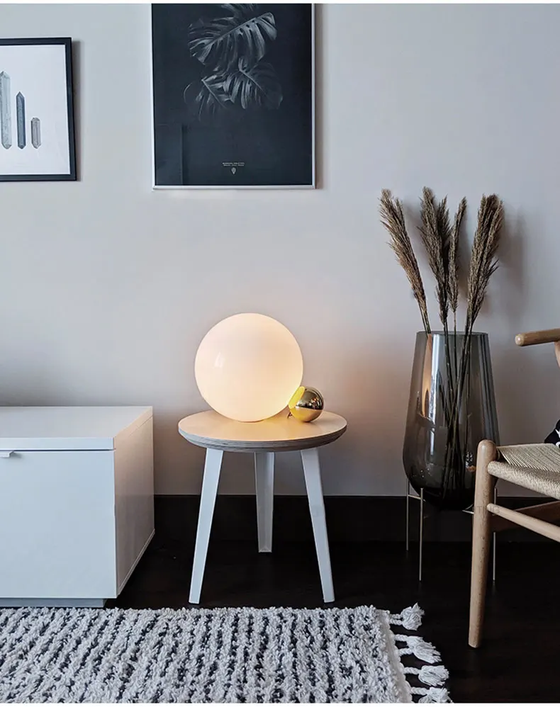 Nordic Glass Ball White Table Lamp Simple Golden Hardware Bedroom Living room Bedside Decoration LED E14 Lighting Desk Lamp